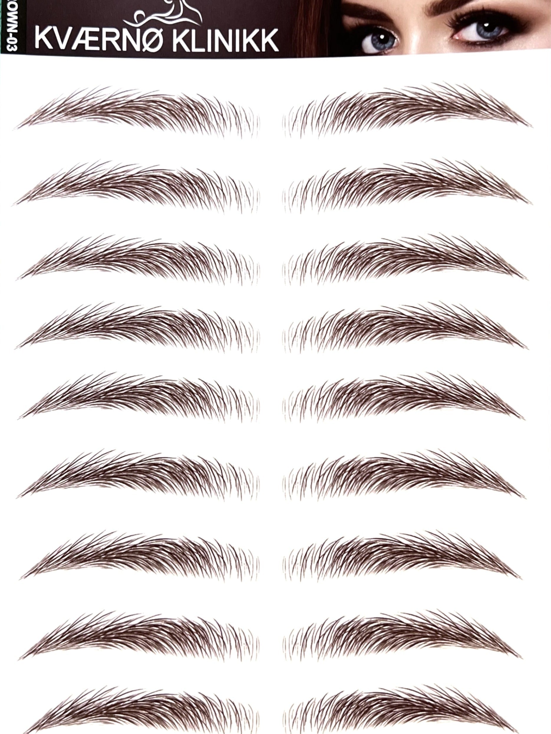 Vannfaste bryn som kan vare opp til 3 dager (kommer an på hudtype, hudrutine aktiviteter). De kan kun brukes en gang. Ønsker du at de skal være mindre kan du klippe de til slik du ønsker.
